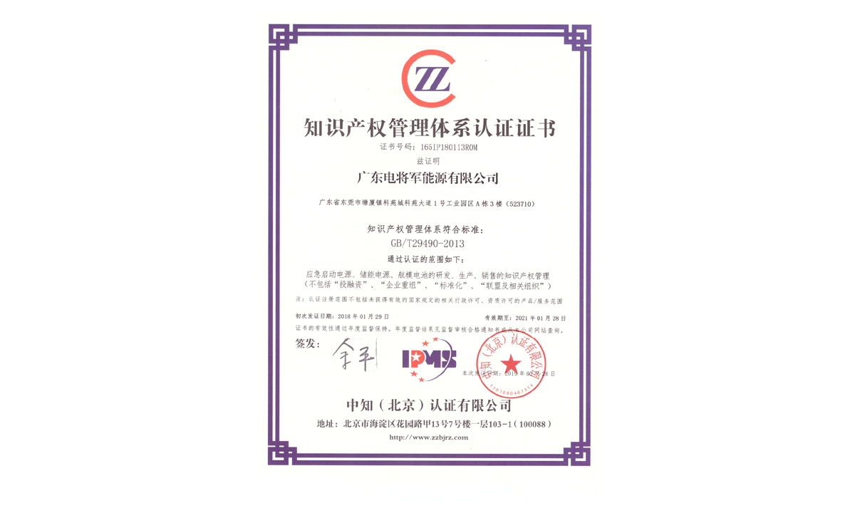 知識(shí)產(chǎn)權(quán)管理體系認(rèn)證證書